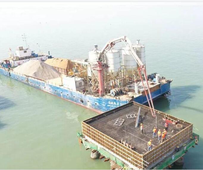 攪拌船布料機(jī)大多采用液壓式布料機(jī),方便水上施工作業(yè),把攪拌站、混凝土拖泵、液壓布料機(jī)一體化放在船體上,混凝土攪拌和混凝土泵送以及布料整體化。